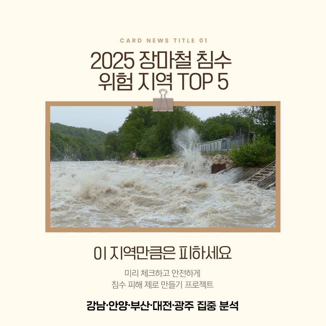 2025년 장마철이 본격적으로 시작되는 6월 중순을 앞두고 있습니다. 매년 반복되는 장마철 침수 피해를 예방하기 위해서는 미리 위험 지역을 파악하고 대비하는 것이 중요합니다.최근 들어 기후변화로 인한 국지성 집중호우가 증가하면서 도심 침수, 하수 역류, 차량 침수 등의 피해가 더욱 심각해지고 있습니다. 본 글에서는 기상청 발표 자료와 과거 침수 피해 데이터를 종합하여 2025년 장마철 전망과 특별히 주의가 필요한 침수 위험 지역들을 분석해보겠습니다.🌧️ 2025년 장마철 기상 전망기상청이 발표한 2025년 장마철 전망에 따르면 다음과 같은 특징을 보일 것으로 예상됩니다.장마 기간 및 강수 전망:장마 시작: 6월 중순~하순장마 종료: 7월 말 전후6월 강수량: 평년 대비 많을 확률 높음주요 특징: 단시간..
